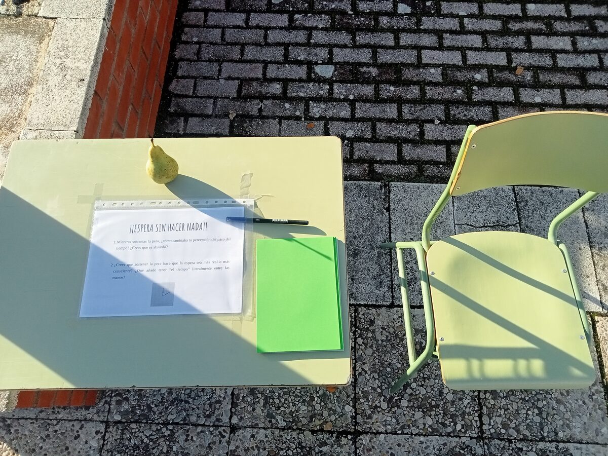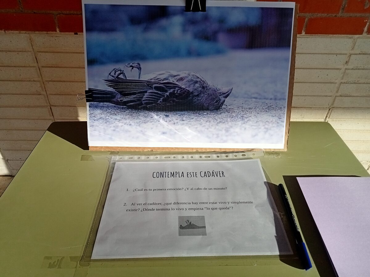 Durante los tres primeros días, grupos de ESO y Bachillerato participaron en los talleres de “Experiencias filosóficas cotidianas”, una propuesta práctica basada en pequeñas acciones que invitan a pensar desde lo más cotidiano. A través de ejercicios como llamarse a uno mismobuscar el propio “yo”contemplar un cadáver de pájaroesperar con una pera en la manomondar una manzana con la imaginaciónmanifestarse a solasinventar titulares o incluso intentar no pensar, el alumnado pudo explorar cuestiones filosóficas fundamentales: la identidad, la percepción, la presencia, la relación con el cuerpo, la realidad, el paso del tiempo o la construcción del mundo.